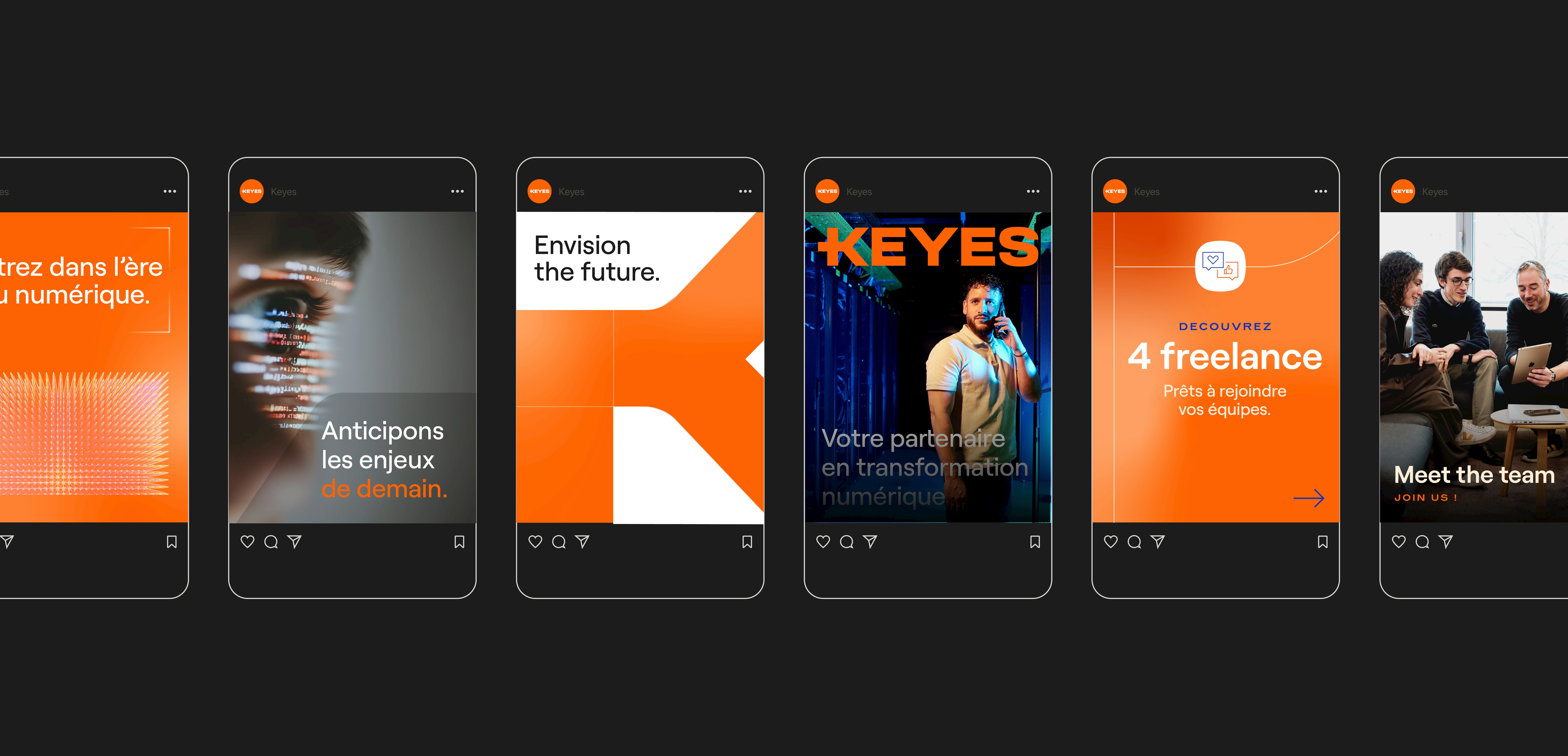 The brand’s communication concept is built on the dual reading of the name KEYES, a powerful promise positioning the brand as a partner capable of both acting concretely and guiding clients through their digital transformation.